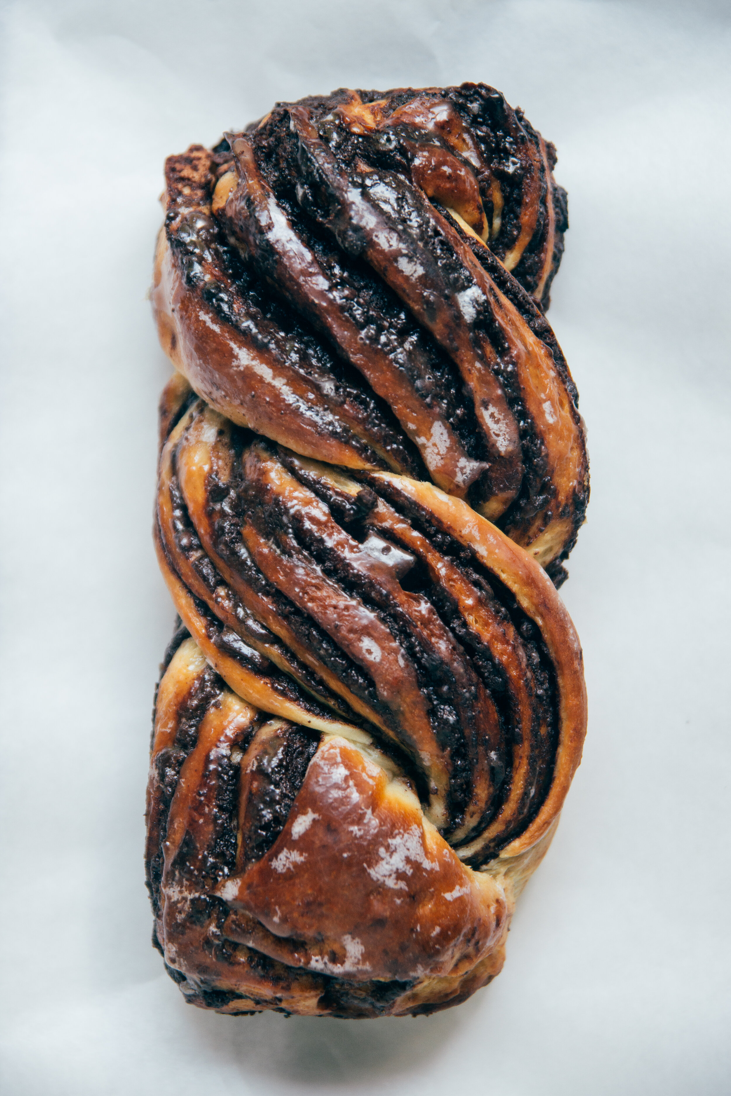 La babka es un pan dulce judío de origen polaco que consiste en una masa de pan “challah” o laminada (diferentes estilos) rellena de chocolate o frutos secos, enrollado estilo trenza y horneado. Como la mayoría de los platos de diferentes culturas, la babka se fue popularizando con la diáspora judía alrededor de Europa y más adelante en Estados Unidos. Y también como muchos otros platos ha tenido sus momentos de tendencia. Cuentan por ahí que la babka solía ser bastante más seca y que no era un postre tan rico en sus orígenes. Hoy en día es un pan muy suave con cierta humedad y que es una delicia para acompañar un cafecito. Cuando la panadería de origen israelí Breads Bakery abrió en NYC, se hizo muy popular, muchos medios gastronómicos empezaron a compartir sus recetas y así poco a poco, a través de redes sociales, la tendencia de la babka se ha mantenido durante un buen tiempo. Para esta versión utilicé dos recetas diferentes y el resultado me gustó mucho. Espero la disfruten.
